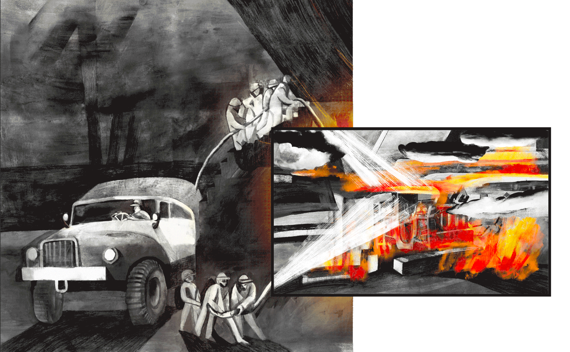 Ілюстрації та анімації для історії про перші дії ліквідаторів Чорнобильської катастрофи.