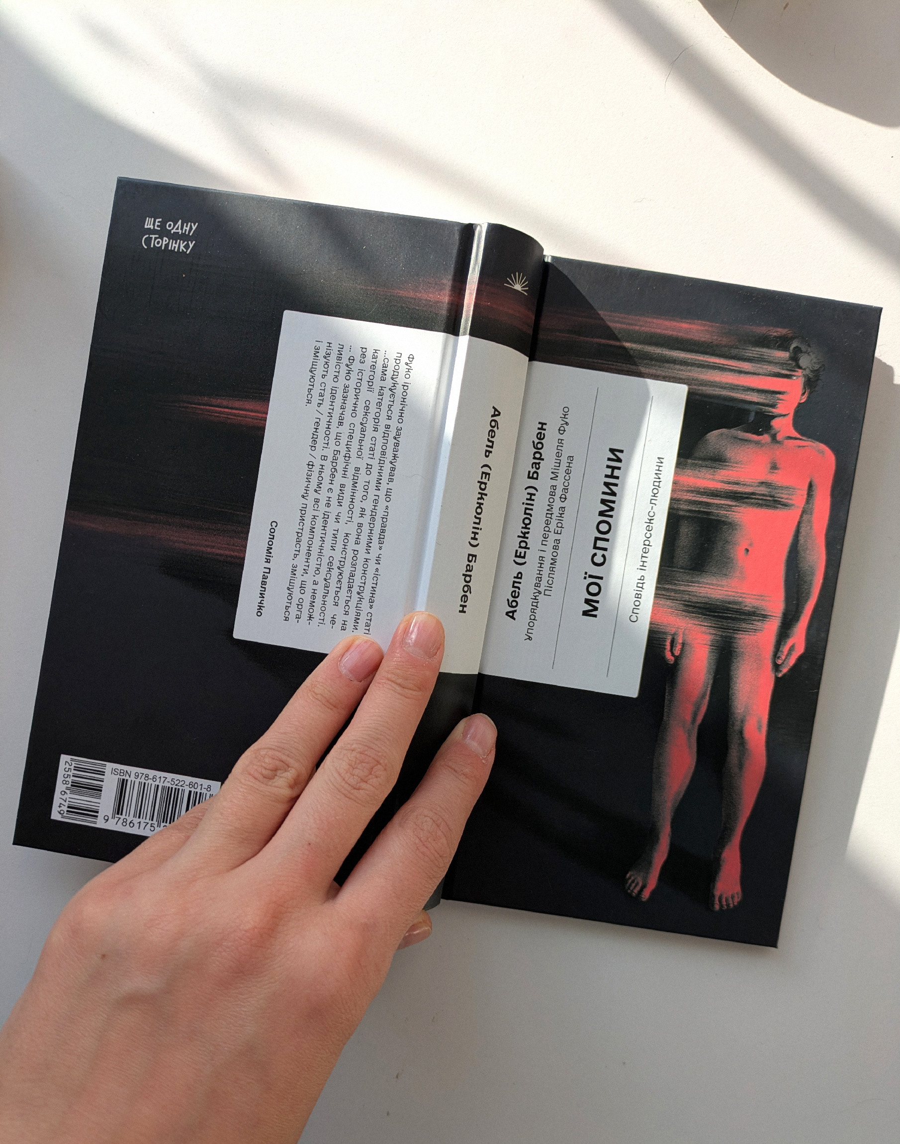 A Ukranian translation of Herculine Barbin's nineteenth-century memoirs, which were originally written in French. The book contains an introduction by Michel Foucault. The story is told by an intersex person born in 1838.